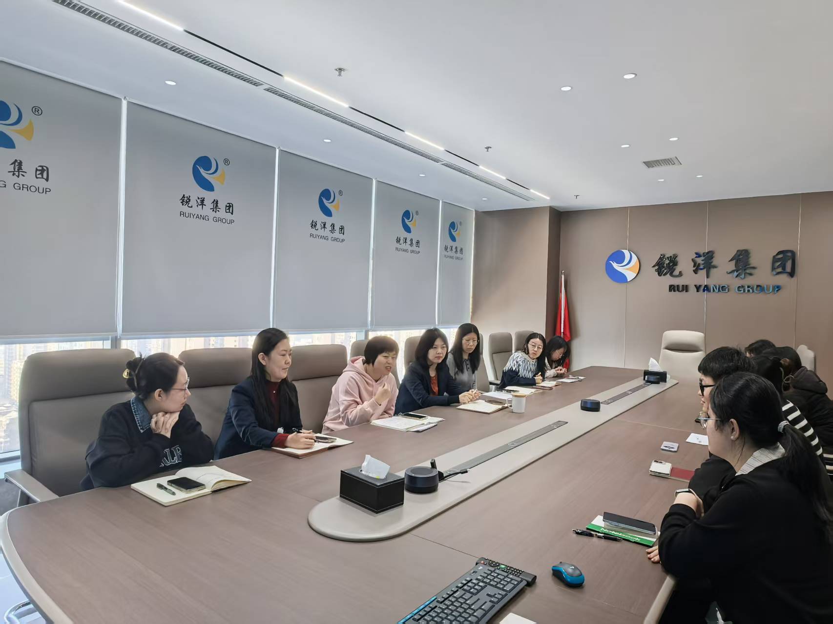 2026年伊始,锐洋集团财务管理部迎来了五张朝气蓬勃的新面孔——来自东北财经大学财务专业的实习生,正式开启为期近两个月的实践学习之旅。为阶段性总结实习成果、明晰后续方向,1月23日上午,一场温馨而正式的实习分享会在集团内举行。集团人力资源部负责人郎旬旬、财务管理部负责人皮月、资金运营部负责人曹旭及担任导师的财务骨干,与五位东财学子围坐一堂,共话成长、展望未来。
