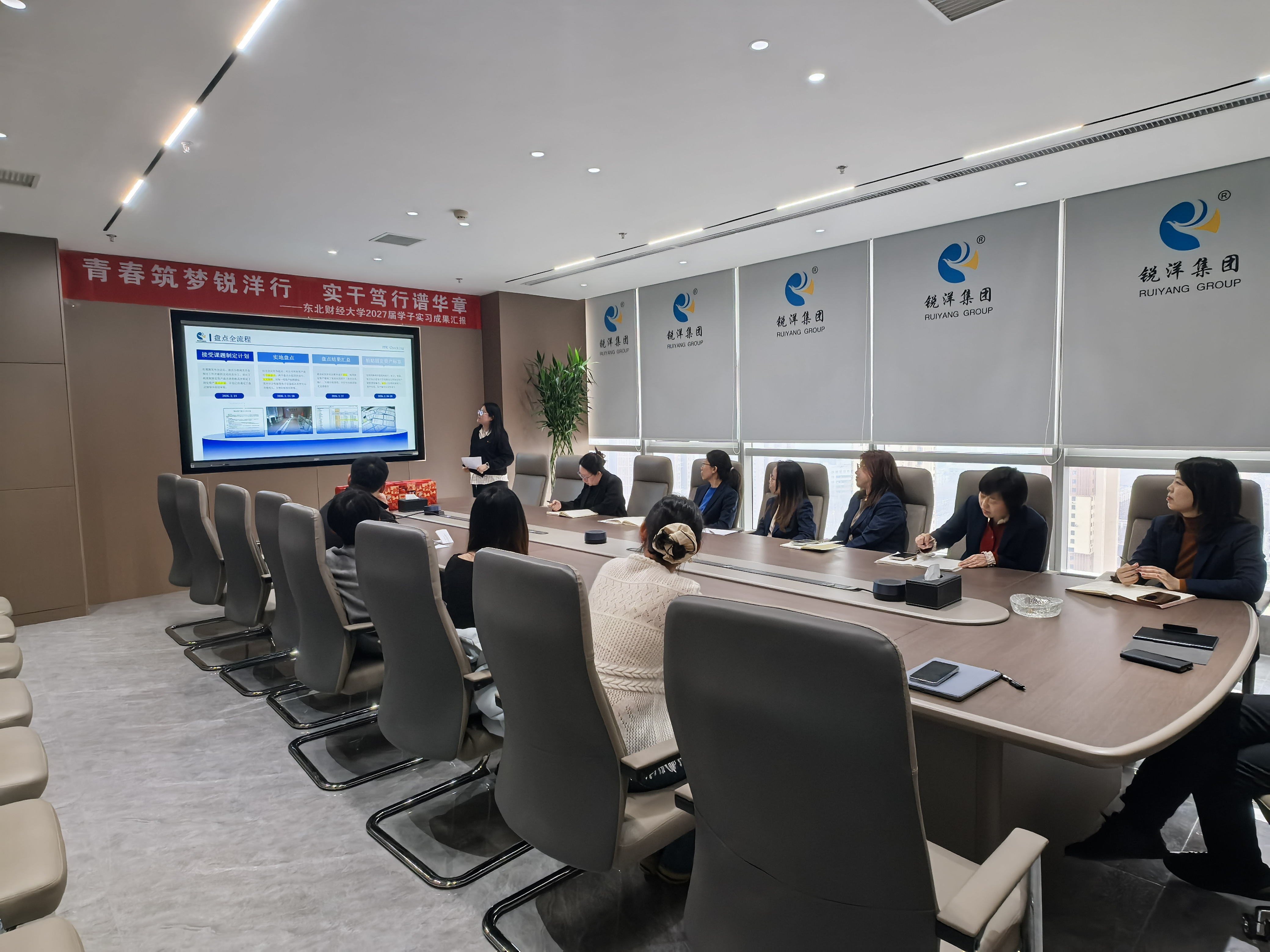 青春筑梦,在锐洋的平台上留下坚实足迹;实干启航,从今天的总结中奔向锦绣前程。本次实习成果汇报会,既是对东财学子实习成果的集中展示,更是校企双方协同育人、共促发展的生动实践。锐洋集团将继续秉持“以人为本、实干笃行”的理念,为青年学子搭建更广阔的舞台,助力大家在职场征途上扬帆筑梦、行稳致远。